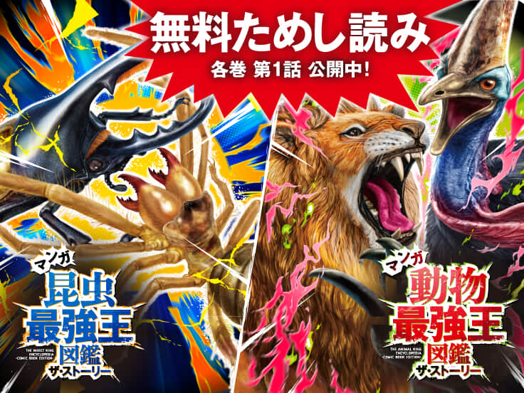 - 『最強王図鑑』マンガシリーズ 第1弾となる「昆虫」「動物」の第1巻は8月10日(木)発売予定!