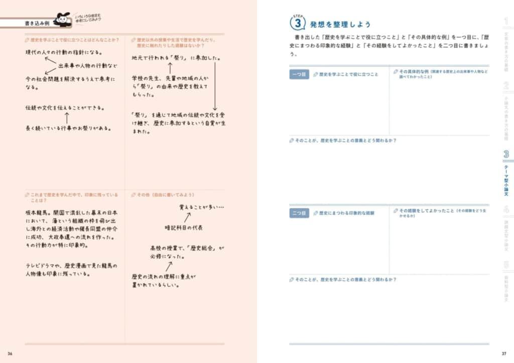 ワークシートを埋めるだけで、自然と小論文に必要な「自分の意見」が完成します。