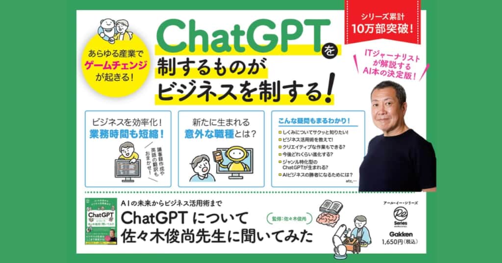 株式会社 学研ホールディングス(東京・品川/代表取締役社長:宮原博昭)のグループ会社、株式会社 Gakken(東京・品川/代表取締役社長:五郎丸徹)は、2023年8月10日(木)に『AIの未来からビジネス活用術まで ChatGPTについて佐々木俊尚先生に聞いてみた』を発売いたしました。発売を記念して、本書の巻頭1,600字を特別公開いたします。