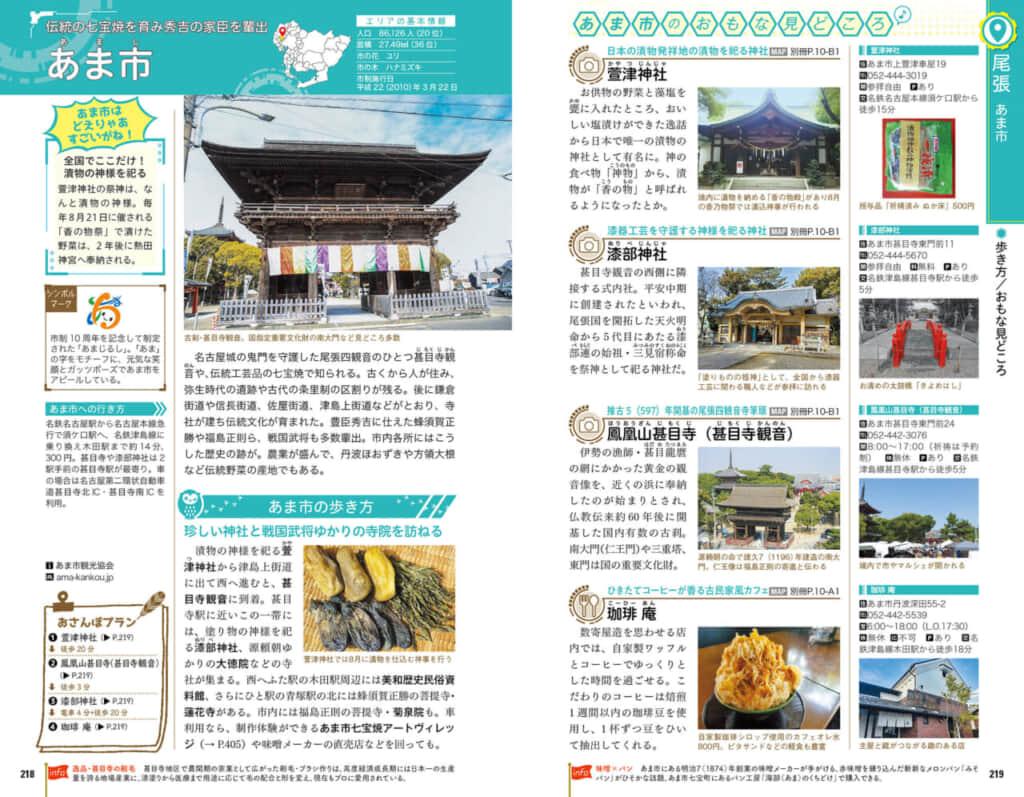 日本最多の寺院数、招き猫生産数日本一、日本初の歩道橋は愛知で誕生……など、愛知には日本一や日本初が目白押し! エリアガイドで紹介している54市町村の記事すべてに、他の町に負けないその土地ならではのご当地自慢ネタを掲載しました。各地が誇る物や歴史に触れながら旅できるのも、愛知の魅力のひとつです。