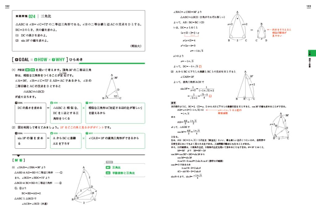 この本は、数学の問題を解くために必要な「解法(HOW)」「理由(WHY)」「知識(PIECE)」の3つを学べる参考書です。上記で説明したように、これからの入試問題を解くために必要な全てがこの一冊で学べるので、読んだ後に入試問題を取り組めば、「エウレカ!(わかった、ひらめいたの意)」と言いたくなる機会が増えてくるでしょう。