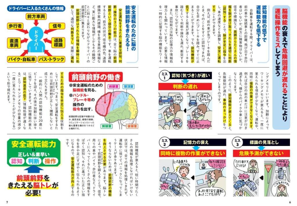 本書内ではこのような脳機能低下と交通事故の因果関係、ドライバーへの検証実験の詳細のほか、実際の事故事例からの高齢運転者のリスクポイントも徹底解説。さらに、認知機能検査を模擬体験できる特集も収録しました。