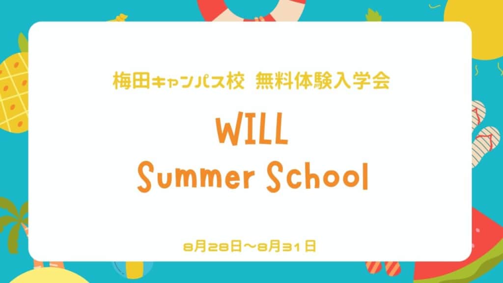 今年は、このWILL学園のサマースクールをより多くの方に届けられるように、外部の方にもご参加いただける内容にしました!