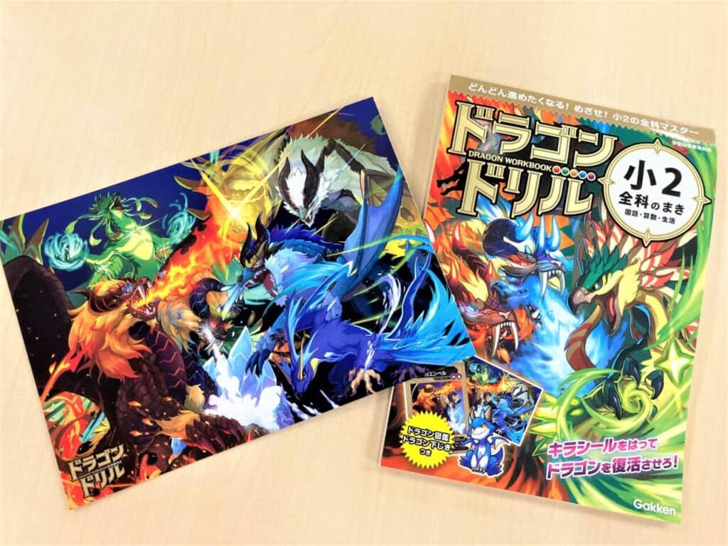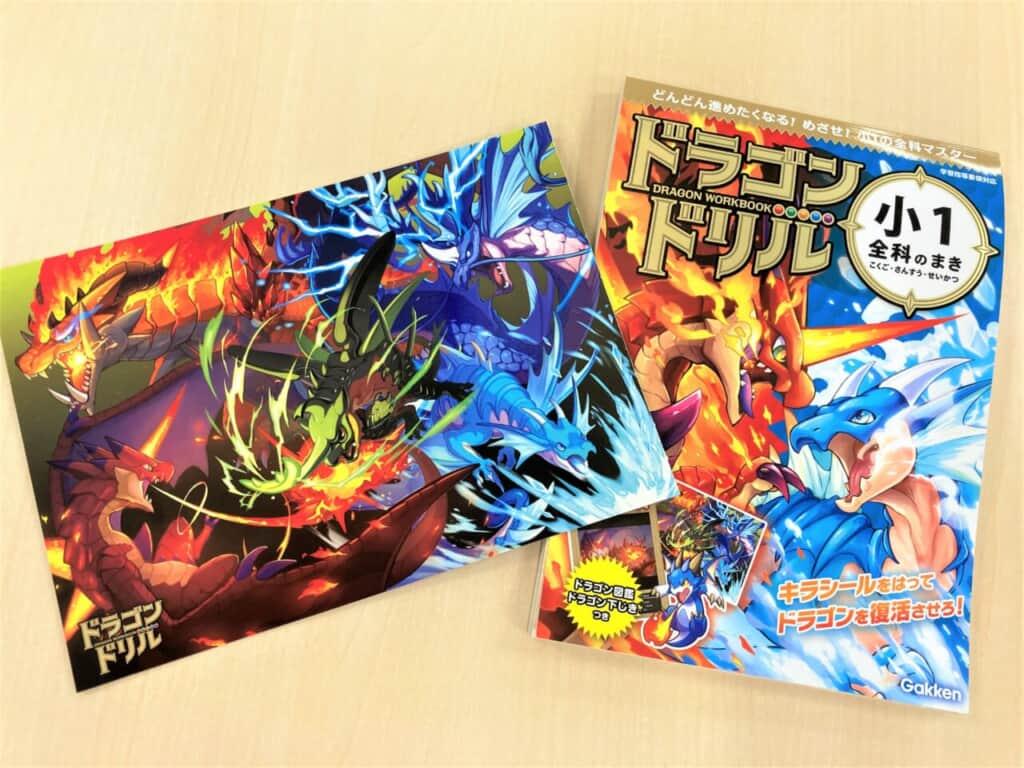 でっかいキラシール、ドラゴン図鑑、パズル、ドラゴン下じき……勉強を楽しむための工夫がたくさん!! 勉強がニガテなお子さんでも楽しくドリルを解いて、あっという間に1冊やりきる成功体験をお届けします!