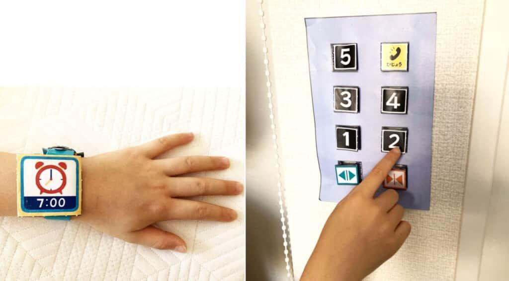スマートウォッチやエレベーターのボタンなど、普段はなかなかひとりじめできないアイテムも、工作なら大丈夫。心ゆくまで何度も触れて遊ぶことができます。