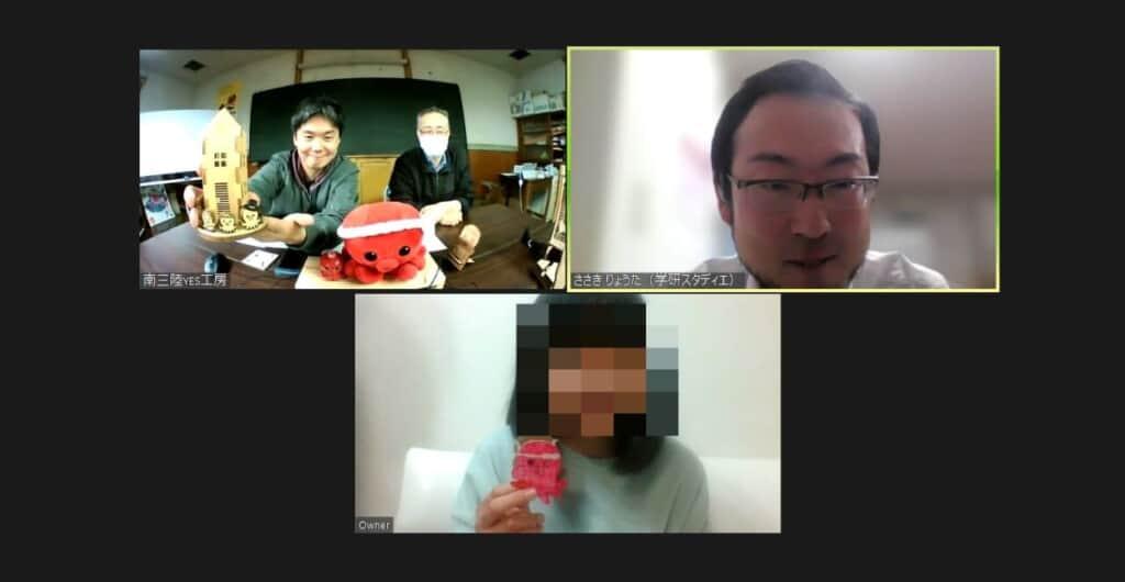木製化にあたり、デザインをした子ども達の思いを直接聞くために開催した打合せを行う中で、南三陸YES工房の大森氏らが、実際に製品を販売することで、デザインをした子ども達、そして子ども達のクリエイティブチャレンジを応援出来たらと学研スタディエに製品販売化を提案しました。