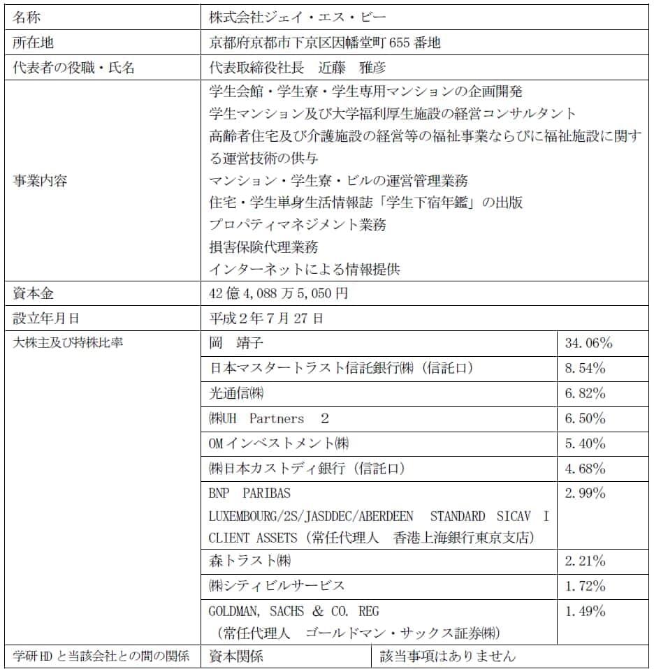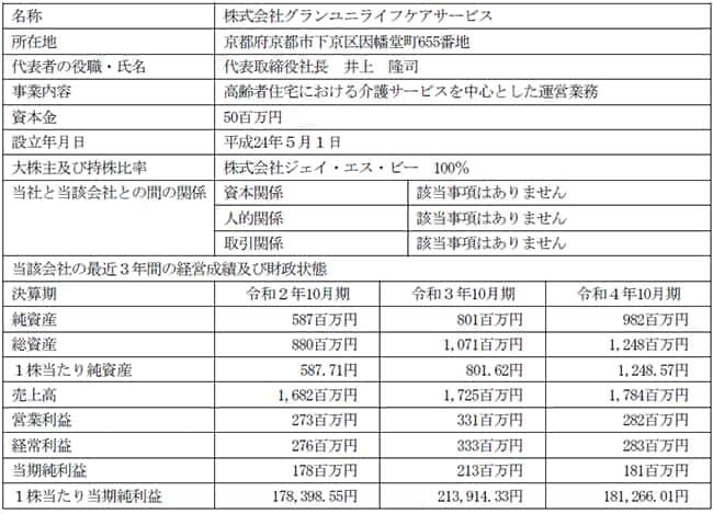 また、本業務提携に併せて、学研ココファンは、サービス付き高齢者向け住宅事業の更なる事業拡大・スピード加速のため、JSBの完全子会社であるGUCSの全株式をJSBから譲受することとし、JSBとの間で株式譲渡契約を締結することにいたしました。