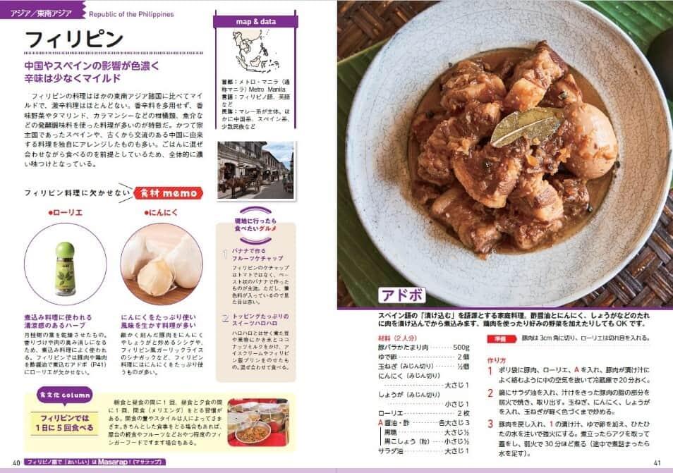 - フィリピンの名物料理といえば、酢醤油に漬け込んだ肉の煮込み・アドボ。ちなみに、フィリピンでは食事は1日5食が常識。みなさん、ご存じでしたか?