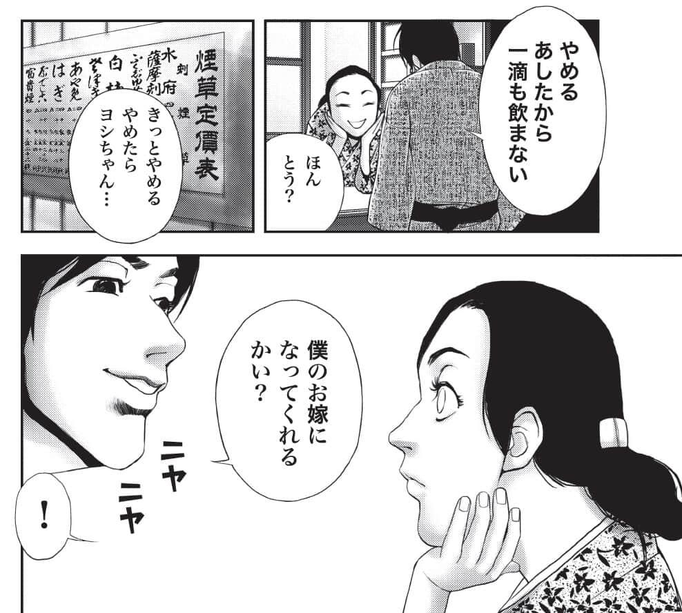 「(女と付き合えるダメ男は)自分に気がありそうだな、と目ざとく気付くと、冗談めかしてからかうこともする。ヨシ子に『お嫁さんになってくれる?』なんてさらっと言ってみせる。モテる男というのは、ほとんどが、この『女に軽口をたたけるスキル』を持っています。そして、甘えるのがうまいのも、女と付き合えるダメ男の特質です。」 (解説より引用)