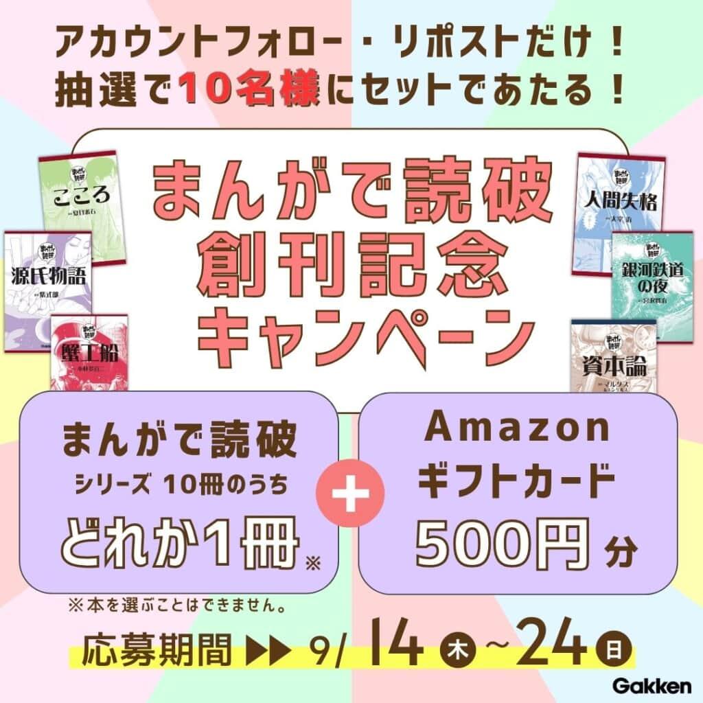 まんがで読破シリーズ10冊のうち1冊とAmazonギフト券500円分をセットで10名様にプレゼント