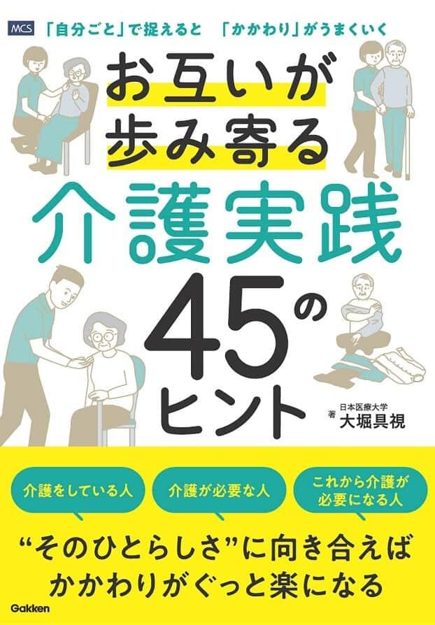 『お互いが歩み寄る介護実践45のヒント』は、日本医療大学の大堀具視(おおほり ともみ)教授が、作業療法士として介護の実践を通し会得した「かかわり」がラクになる介助やケアの方法を凝縮したものです。