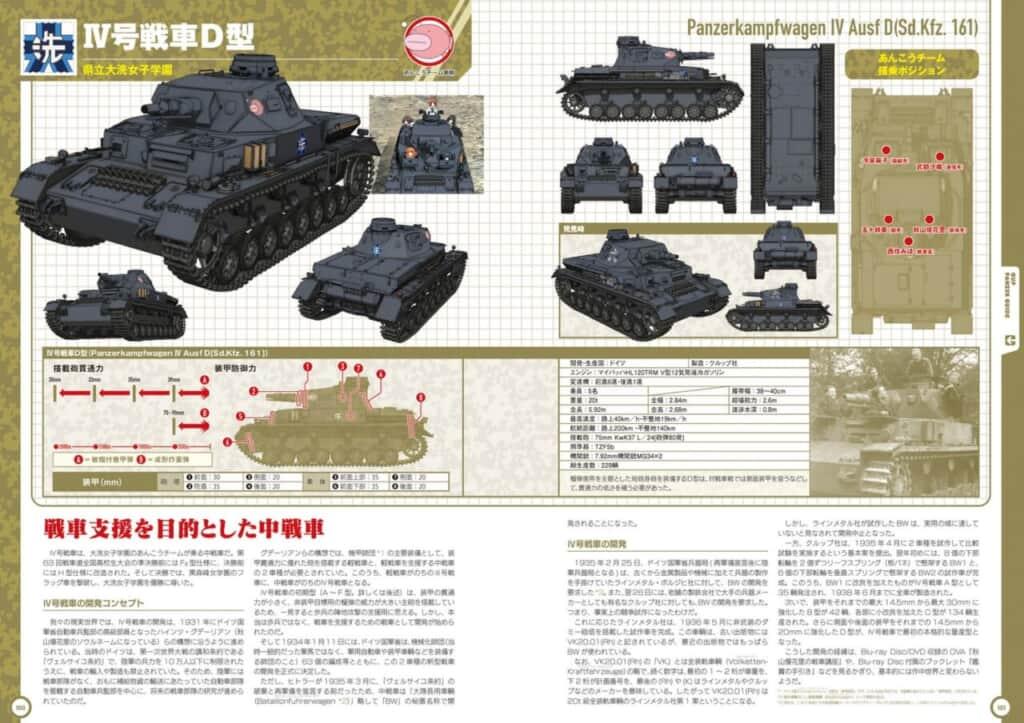本書は、キャラクターガイド、エピソードガイド、スタッフ・キャストインタビュー、パンツァーガイドなどを収録。特に、本作ではおなじみの戦車の設定・解説をしたパンツァーガイドは、軍事・戦史関係に詳しく、『ガールズ&パンツァー 最終章』で軍事監修を担当しているライター・田村尚也さんが執筆しており、発売当時、大きな反響を呼びました。