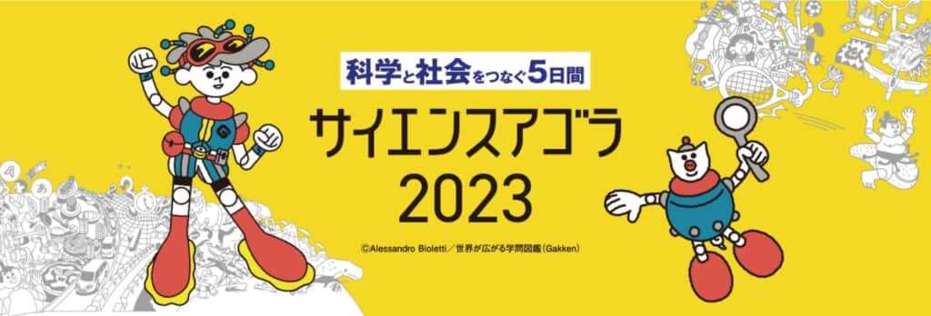 - サイエンスアゴラ2023のHPより。『学問図鑑』のキャラクターたちがお出迎え。