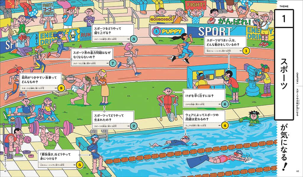 - 『学問図鑑』4章のページ。イラストはSANDER STUDIO氏による。