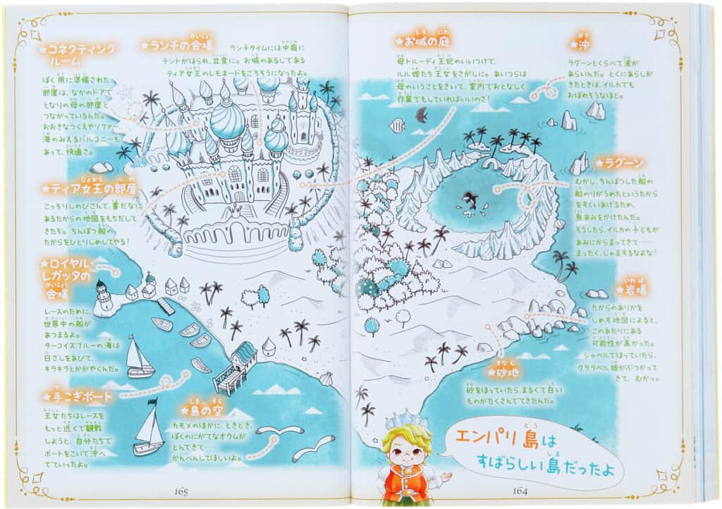 メインのエピソードのほかにも、素敵な王子さまたちや、島をおさめるエレガントな女王さま、豪華なガーデンパーティー、伝説の沈没船の宝物やジュエルの魔法など、見どころはたくさん。