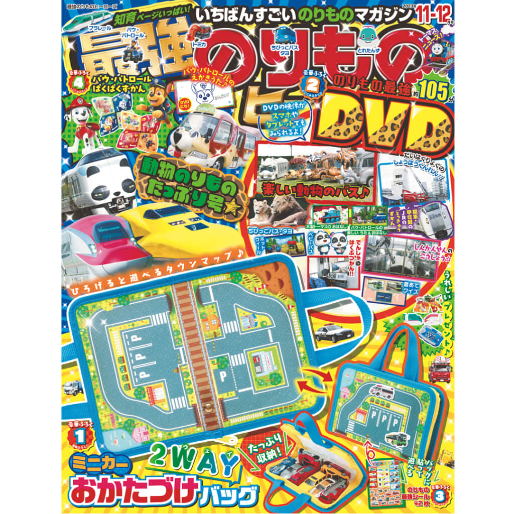 日本一のキッズ向けのりもの雑誌※『最強のりものヒーローズ11-12月号』は、ミニカーのおかたづけにピッタリなバッグが付録! 広げるとタウンマップとしても遊べる2WAY仕様の最強バッグ★ DVDには楽しい動物のバスや、大迫力の消防訓練、新幹線の工場などスペシャルなチャプターが勢ぞろい! おでかけにオススメな東武鉄道の博物館や、関東甲信越の特急列車、パウ・パトロールやきかんしゃトーマスも登場! のりものシールや楽しい工作も付いて、たっぷり遊べる充実の1冊♪