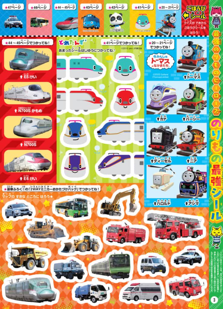 のりものシールがたっぷり! 付録のおかたづけバッグに貼っても楽しめる♪