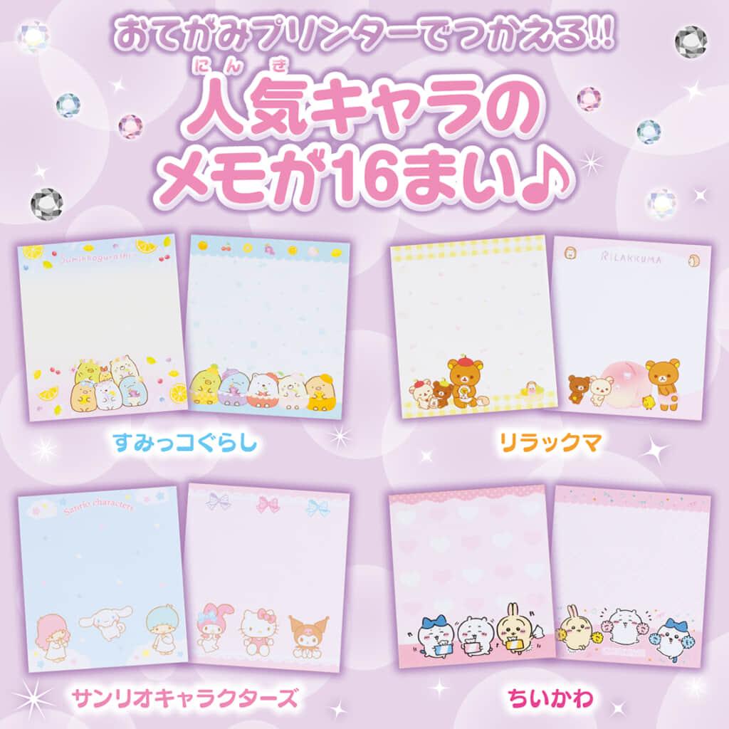 本誌には、おてがみプリンターで使えるメモがたくさん付いています。16枚のキャラクターメモには、人気キャラがたくさん登場! すみっコぐらし、リラックマ、サンリオキャラクターズ、ちいかわ、シルバニアファミリー、リカちゃん、あつまれ どうぶつの森、コウペンちゃん、星のカービィ、ほっぺちゃん、リトルフェアリーテイル、ティナひめ&ルナひめと、豪華なラインナップです。