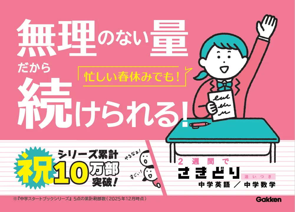 【入学前にスタートダッシュ!】シリーズ累計10万部突破『さきどり追いつき 中学英語/中学数学 新装版』、春休みにぴったりの参考書が重版決定!