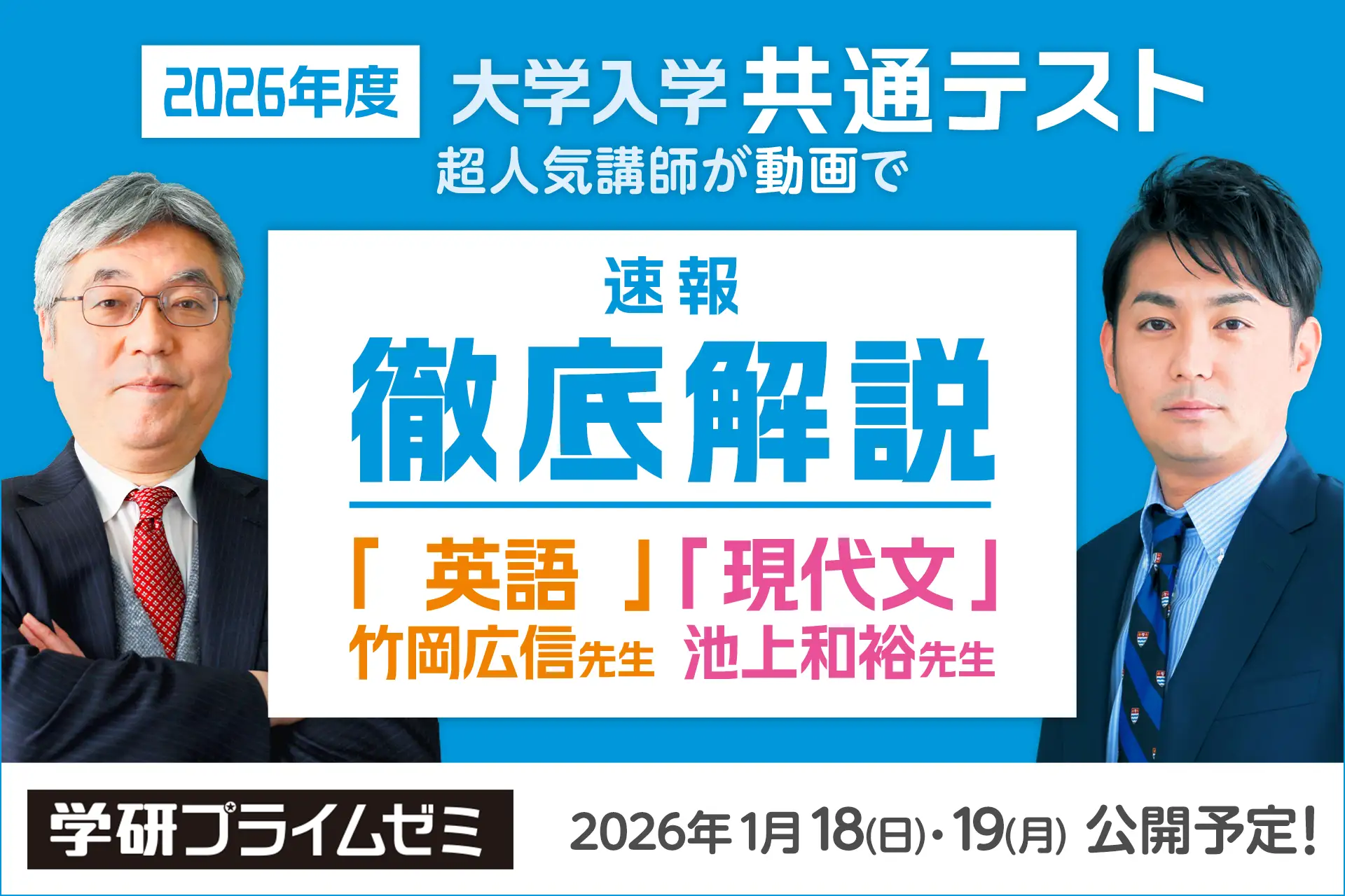 2026共通テストの解説動画をYouTubeで速報! 「学研プライムゼミ」の人気講師が「英語」「現代文」を徹底解説‼