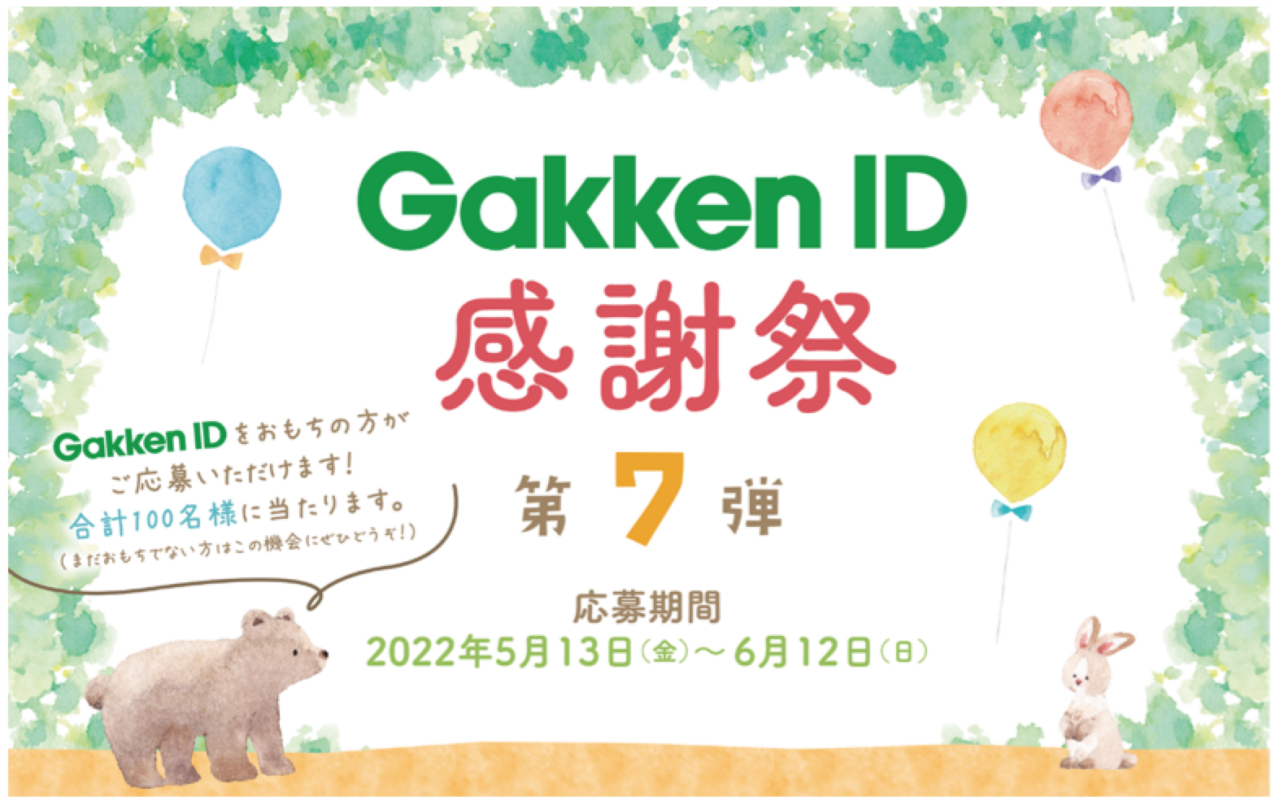 • 「GakkenID感謝祭」日頃の感謝をこめて、第7弾キャンペーン開催中! 2022年05月24日 「GakkenID感謝祭」日頃の感謝をこめて、第7弾キャンペーン開催中!