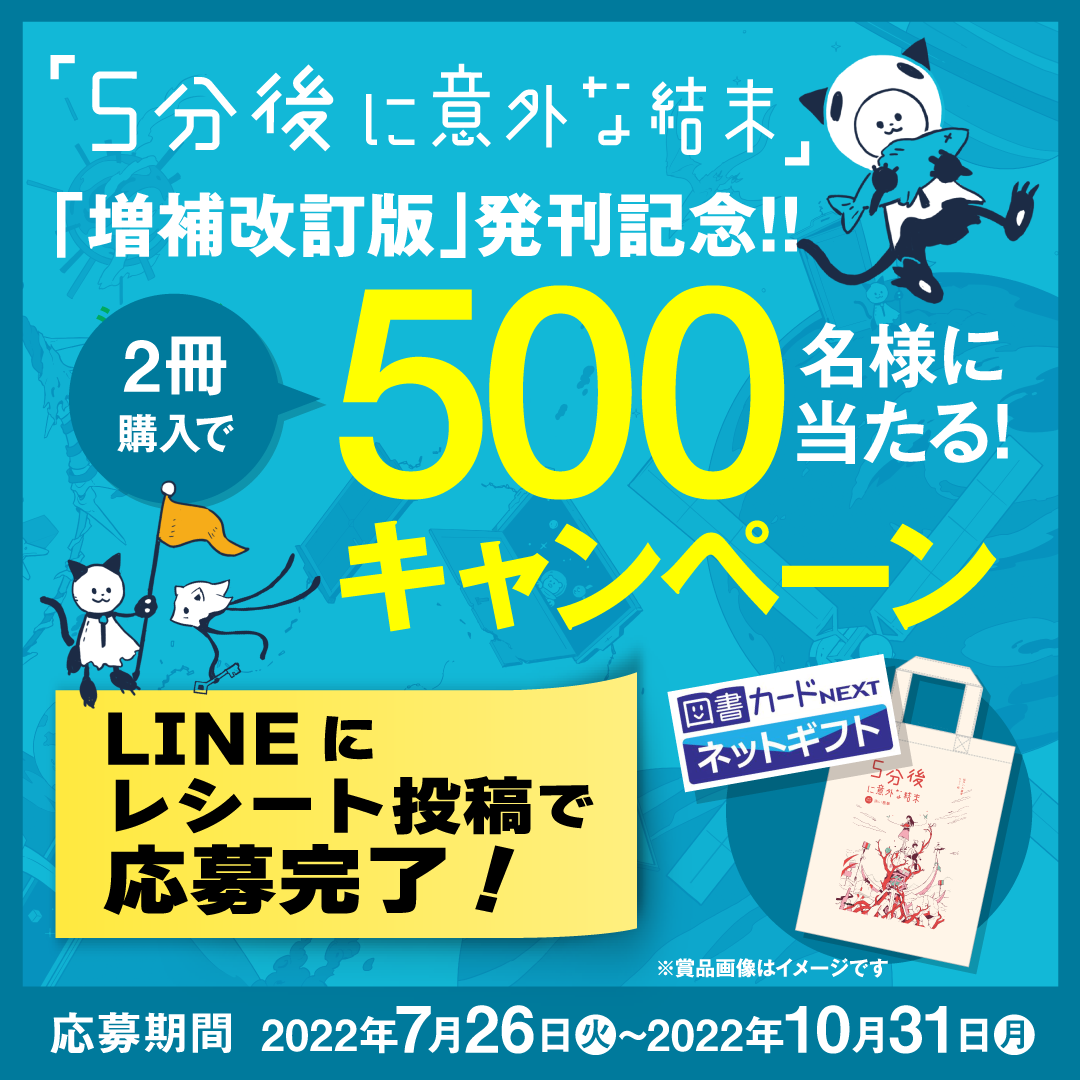 • 【ついに決定!】「5分後に意外な結末」大賞 各賞受賞作品発表!! 2025年11月27日 【ついに決定!】「5分後に意外な結末」大賞 各賞受賞作品発表!!