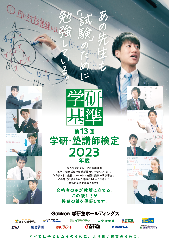 - 学研グループの塾の講師は毎年検定試験の受験が義務付けられている。合格者のみしか教壇に立つことが許されておらず、この厳しさが授業の質を保証している。