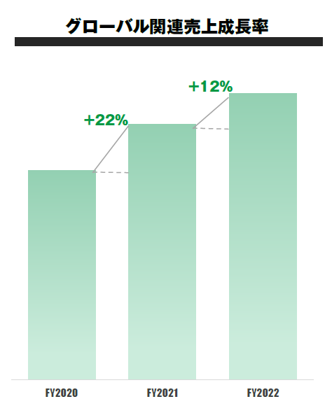 - 学研グループ全体の、グローバル関連の売上成長率のグラフ。