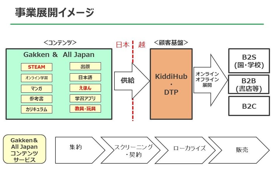 - 事業展開イメージ。Gakkenのみならず、All Japanの教育コンテンツを、