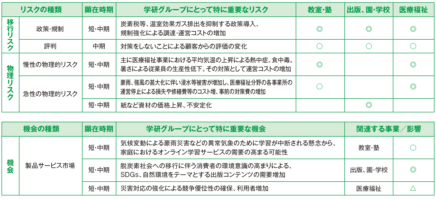 学研グループは2022年8月に「気候関連財務情報開示タスクフォース(TCFD)」の最終報告書(TCFD提言)に賛同しました。