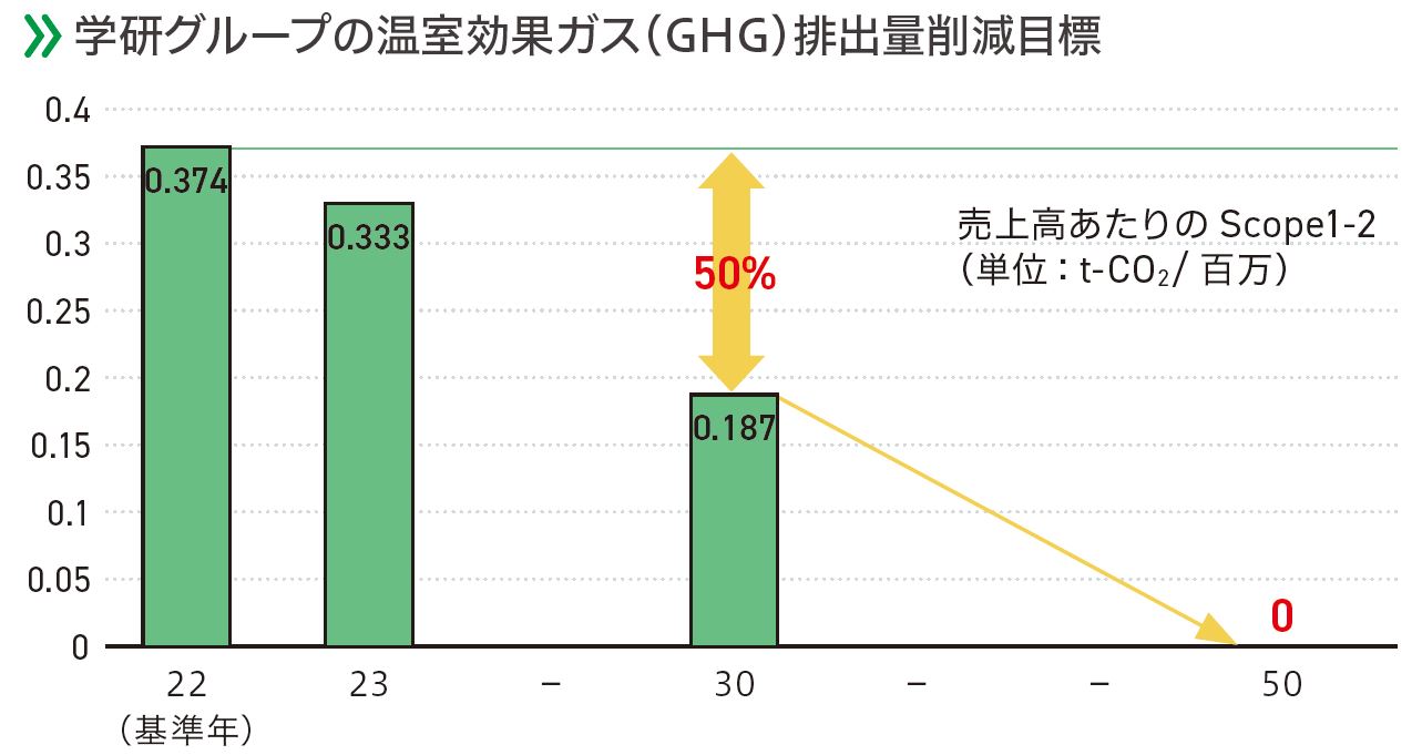 「2030年までに、売上高あたりの温室効果ガス排出量を2022年度比50%削減」