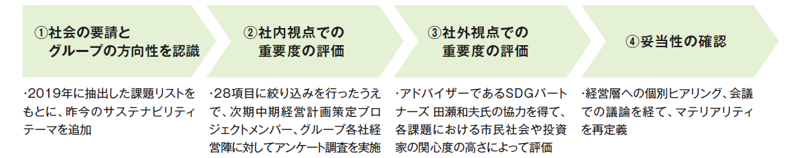 当グループの多様な価値観、幅広い年齢層の意見を取り入れたうえで、経営層でのディスカッションを経て特定したこと。